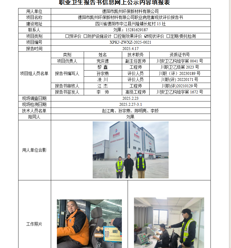 德阳市凯州环保新材料有限公司职业病危害因素现状评价
