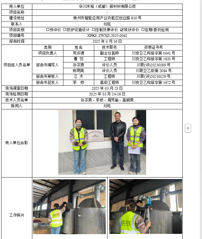 华川米格(成都)新材料有限公司职业病危害因素现状评价