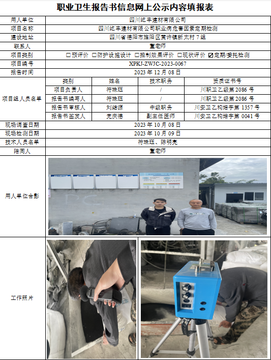 四川赛创电器设备有限公司职业病危害因素定期检测