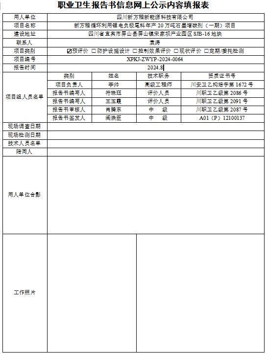四川新方程新能源科技有限公司职业病危害因素预评价