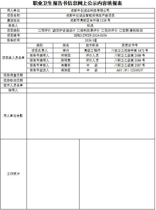 成都中创诚业科技有限公司职业病危害因素防护设施设计专篇
