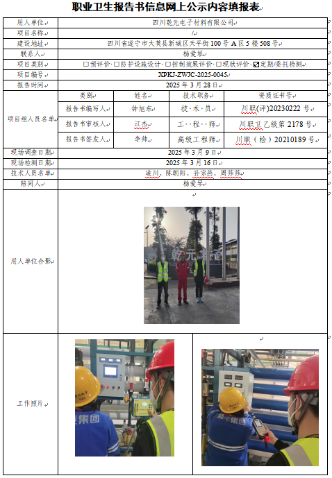 四川乾元电子材料有限公司职业病危害因素定期检测