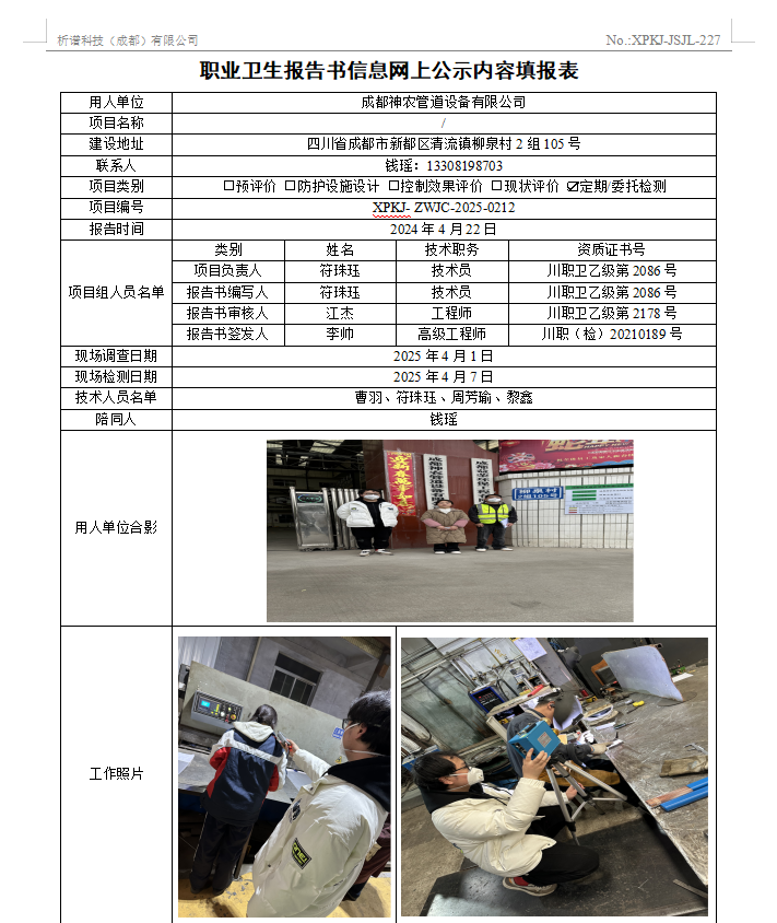 宜宾市纳实建材有限公司职业病危害因素定期检测