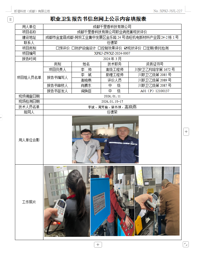 天府新区成都片区新兴合成兴业干燥剂经营部定期检测