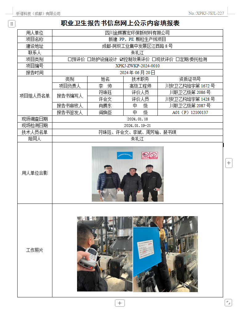 四川金辉赛宏环保新材料有限公司控制效果评价