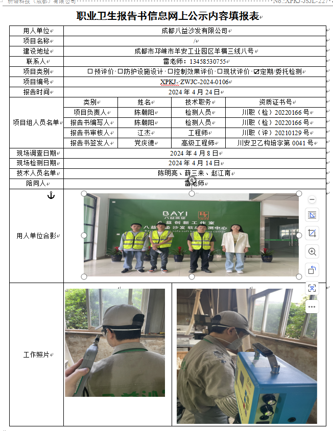 中国电建集团四川工程有限公司瑞力装备制造分公司职业病危害因素定期检测