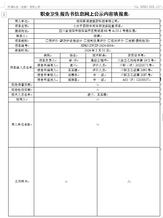 德阳英诺凌医药科技有限公司职业病危害因素防护设施设计专篇