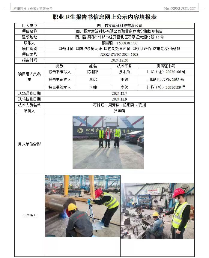 四川霖发建筑科技有限公司职业病危害因素定期检测