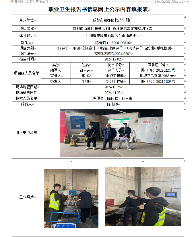 成都市新都区扶贫印刷厂职业病危害因素定期检测