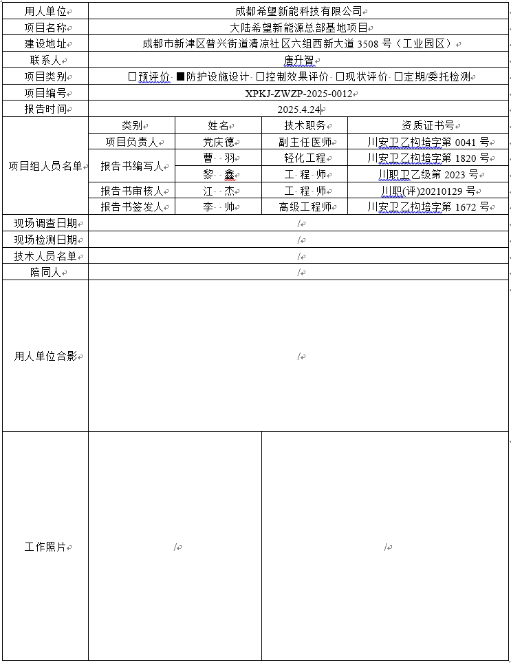成都希望新能科技有限公司职业病危害因素防护设施设计专篇