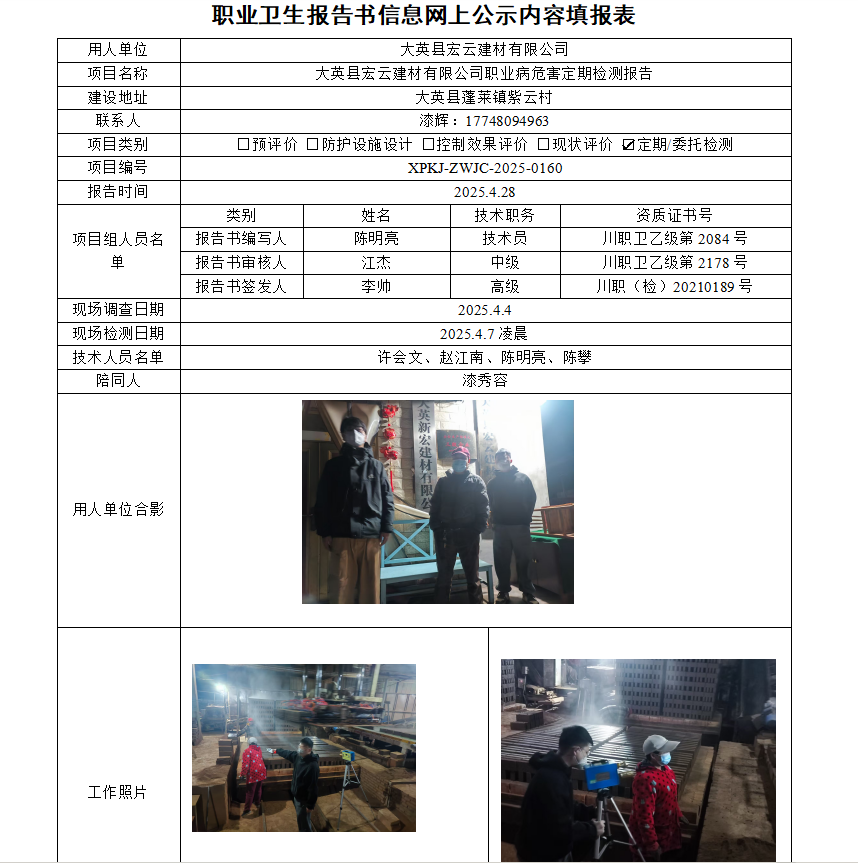 四川嘉华机械有限责任公司职业病危害因素定期检测
