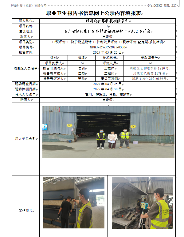 成都存信电子配件有限责任公司职业病危害因素现状评价