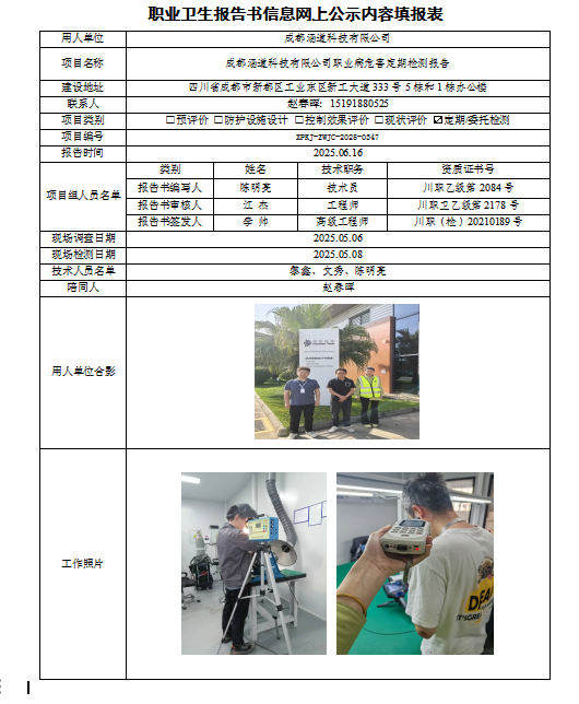 成都市双流恒生锻造有限公司职业病危害因素定期检测
