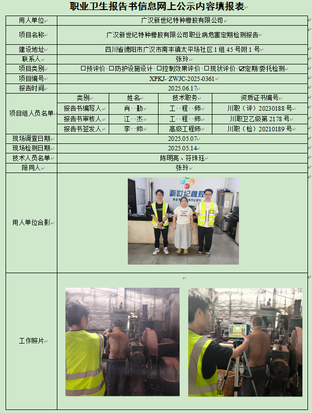 广汉新世纪特种橡胶有限公司职业病危害因素定期检测