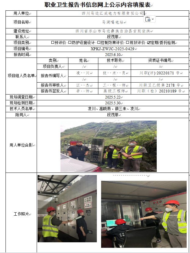 马边汇成电力有限责任公司职业病危害因素定期检测