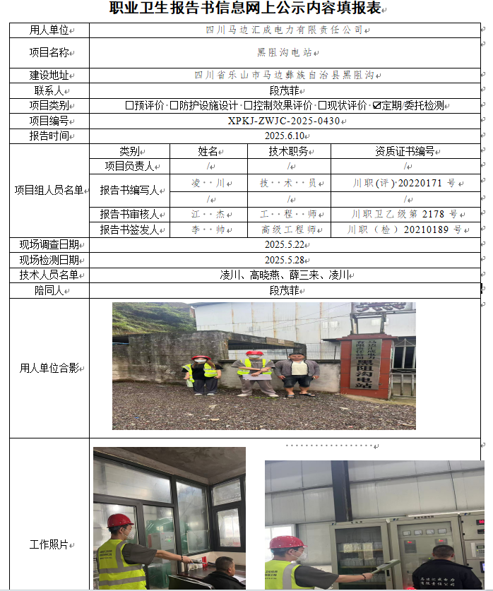 马边汇成电力有限责任公司职业病危害因素定期检测
