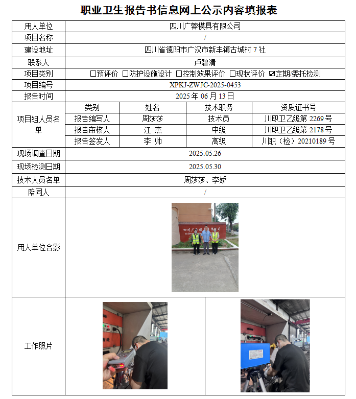 彭州市升平镇冬怡石材加工厂职业病危害因素定期检测