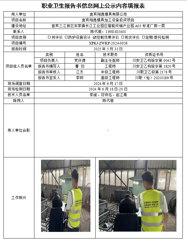 宜宾翔逸模具有限公司职业病危害因素控制效果评价
