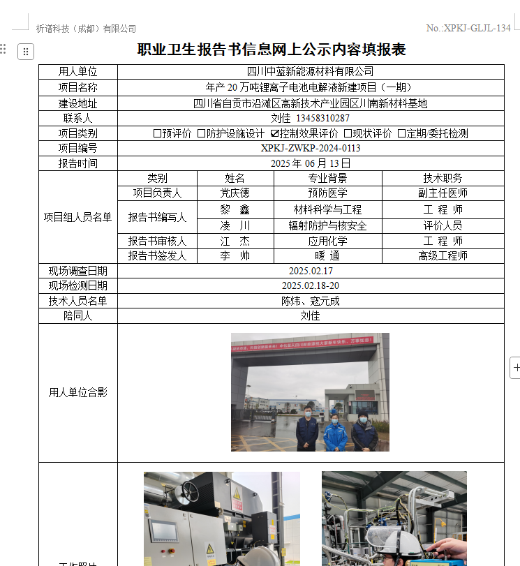 四川中蓝新能源材料有限公司职业病危害因素控制效果评价