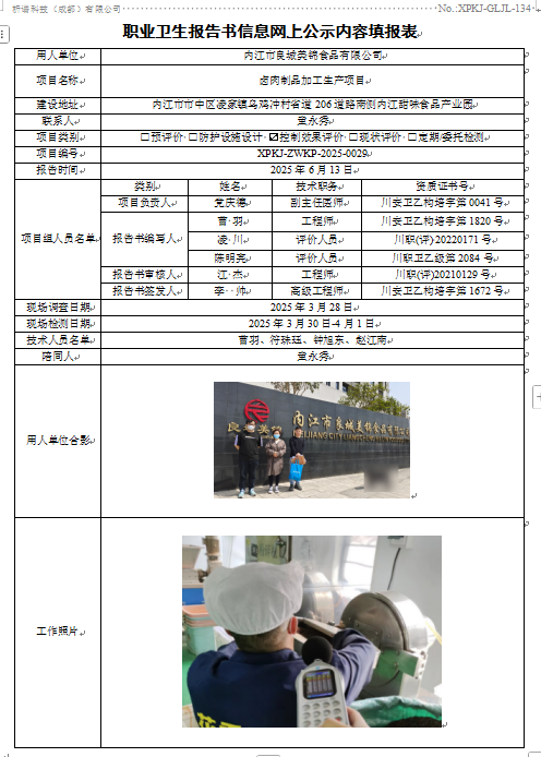 内江市良城美锦食品有限公司职业病危害因素控制效果评价