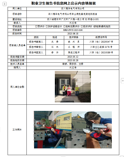 四川兴华路通再生资源科技有限公司职业病危害因素定期检测