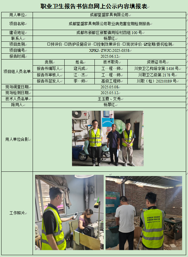 成都市雅杰鑫工具有限公司职业病危害因素定期检测