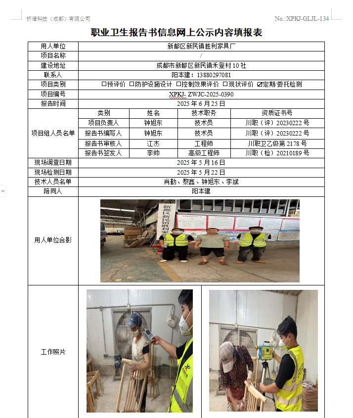 新都区新民镇胜利家具厂职业病危害因素定期检测