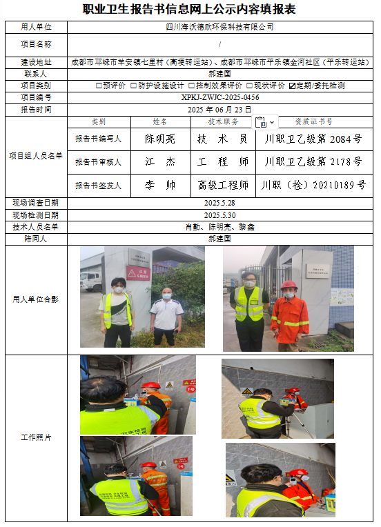 四川海沃德欣环保科技有限公司职业病危害因素定期检测