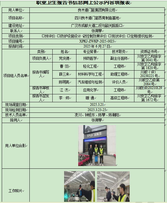 良木道门窗集团有限公司职业病危害因素控制效果评价