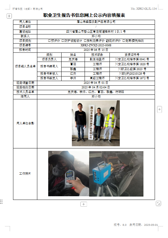 眉山丰盛园农副产品有限公司职业病危害因素现状评价
