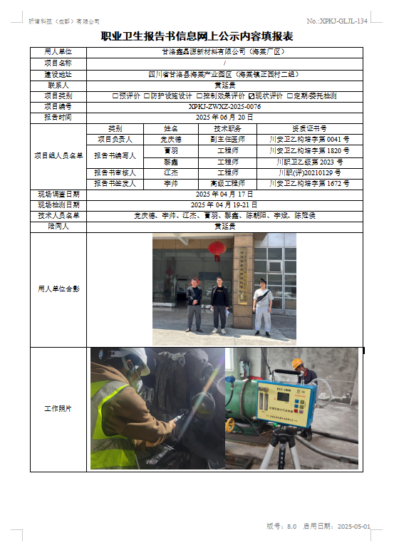 甘洛鑫晶源新材料有限公司海棠厂区职业病危害因素现状评价