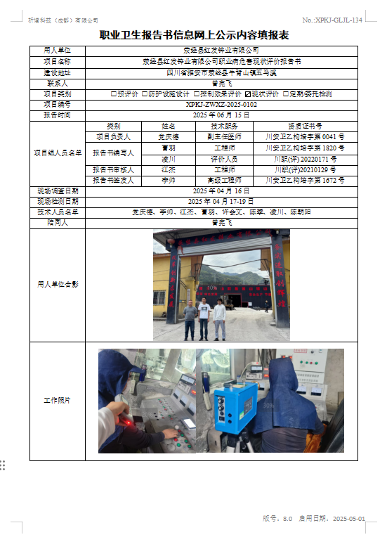 荥经县红发锌业有限公司职业病危害因素现状评价