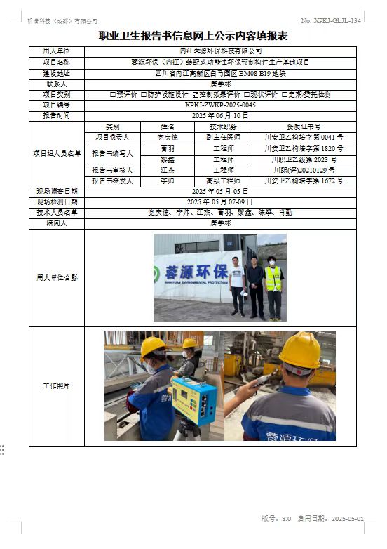 内江蓉源环保科技有限公司职业病危害因素控制效果评价