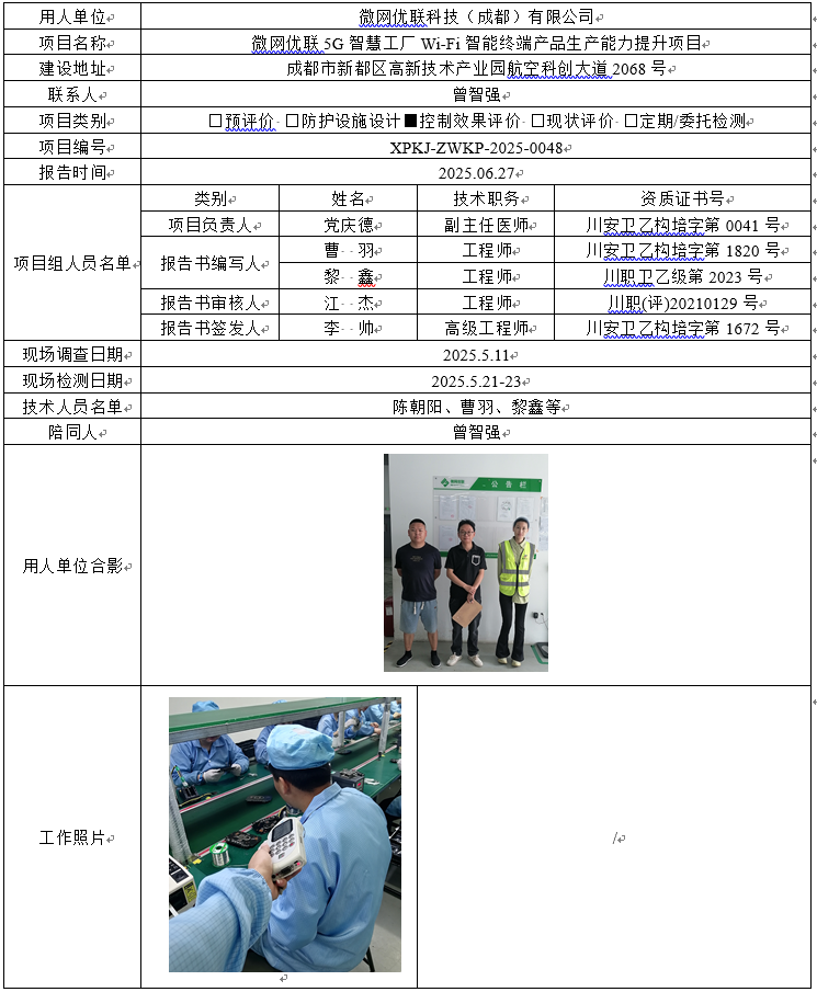 微网优联科技(成都)有限公司职业病危害因素控制效果评价