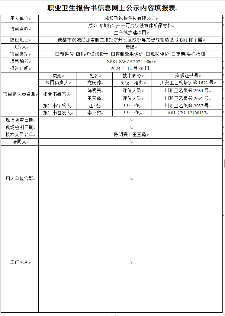成都华西流体控制科技有限公司职业病危害因素定期检测