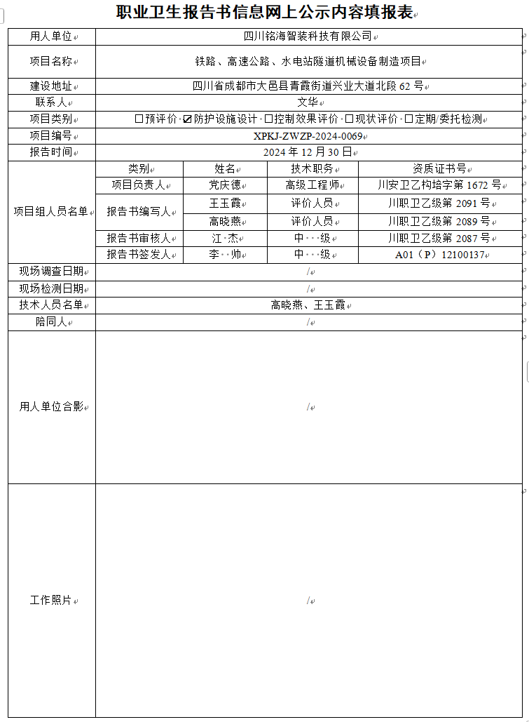 四川铭海智装科技有限公司职业病危害因素防护设施设计专篇