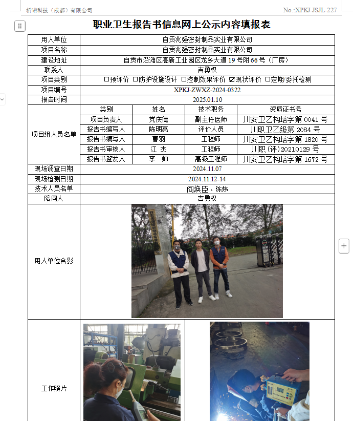 自贡兆强密封制品实业有限公司职业病危害因素现状评价