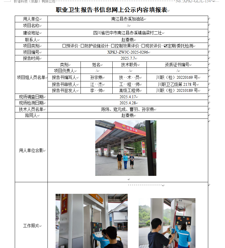 南江县赤溪加油站职业病危害因素定期检测