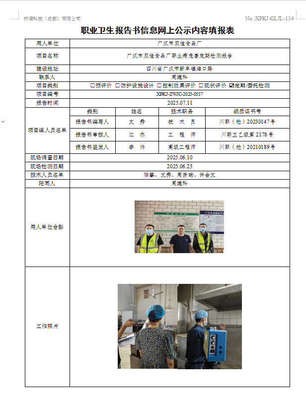四川振源玻璃制品有限公司职业病危害因素定期检测
