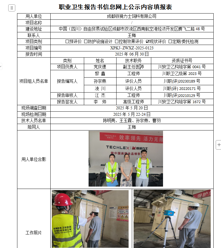 成都铁骑力士饲料有限公司职业病危害因素现状评价