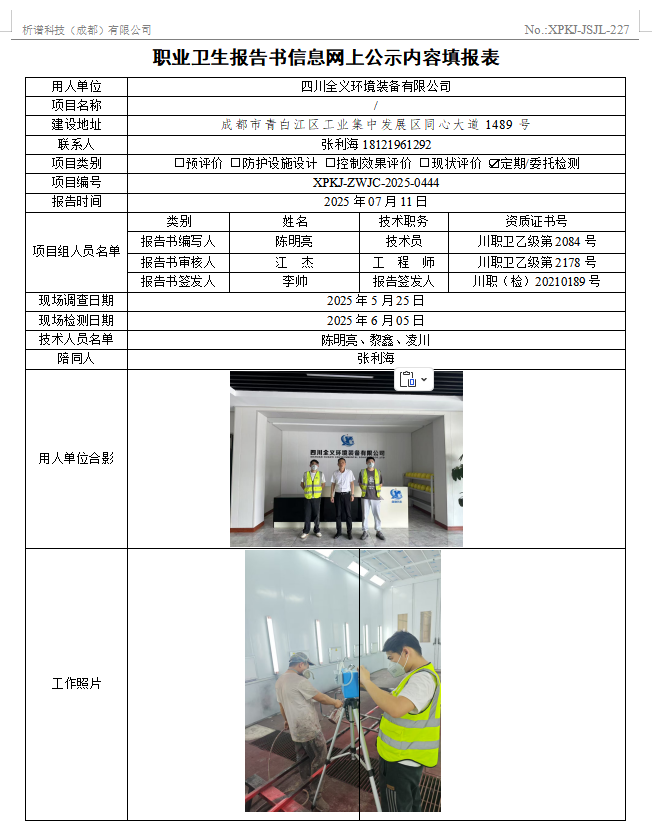 国网四川省电力公司巴中市巴州供电分公司三江电站职业病危害因素定期检测