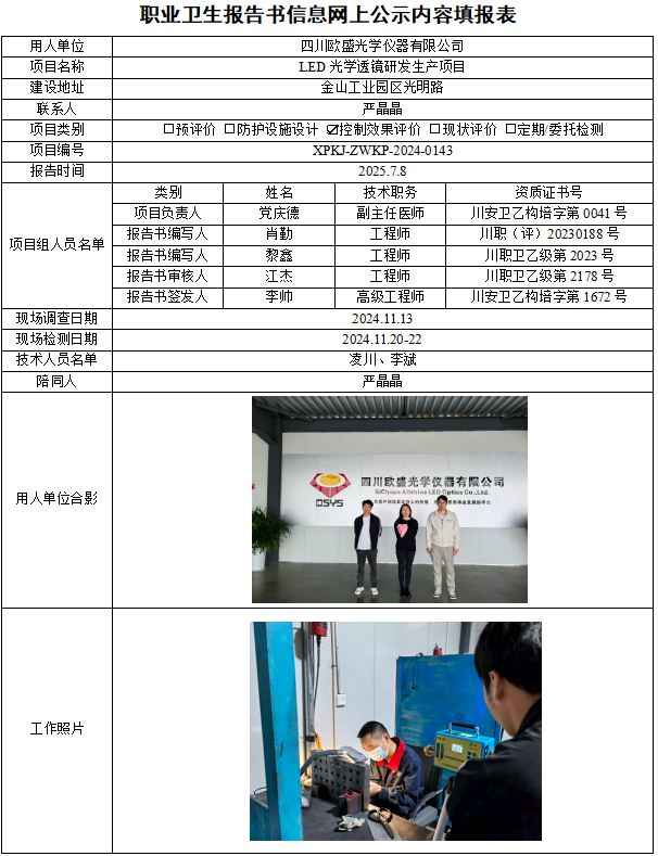 四川欧盛光学仪器有限公司职业病危害因素控制效果评价