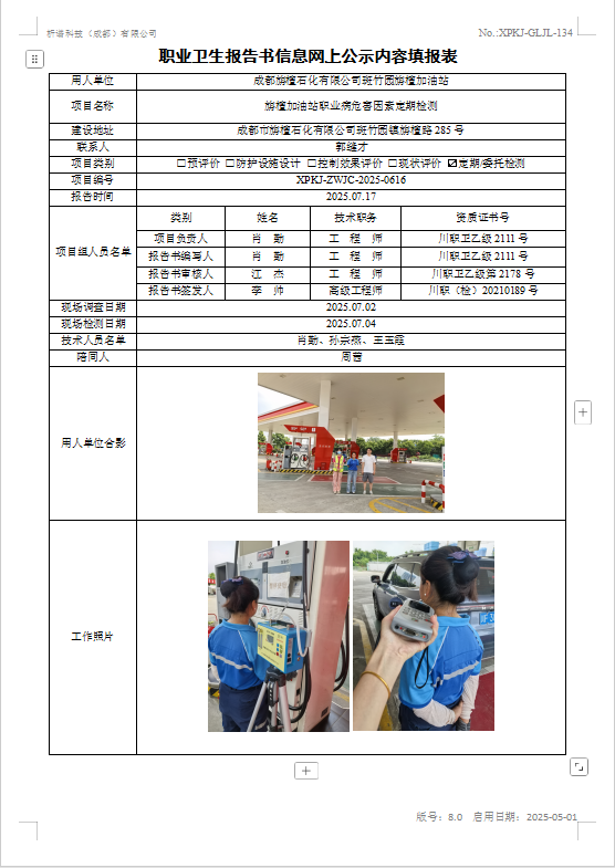 荥经华盛冶金科技有限公司职业病危害因素定期检测