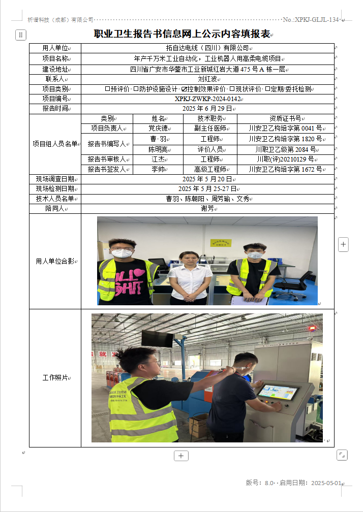 拓自达电线(四川)有限公司职业病危害因素控制效果评价