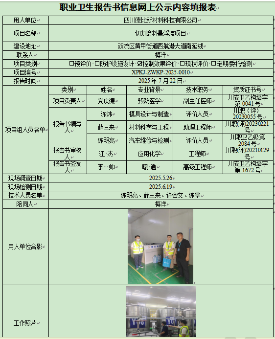 四川德比新材料科技有限公司职业病危害因素控制效果评价