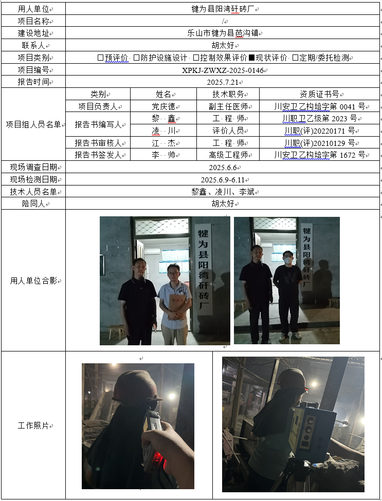 犍为县阳湾矸砖厂职业病危害因素现状评价