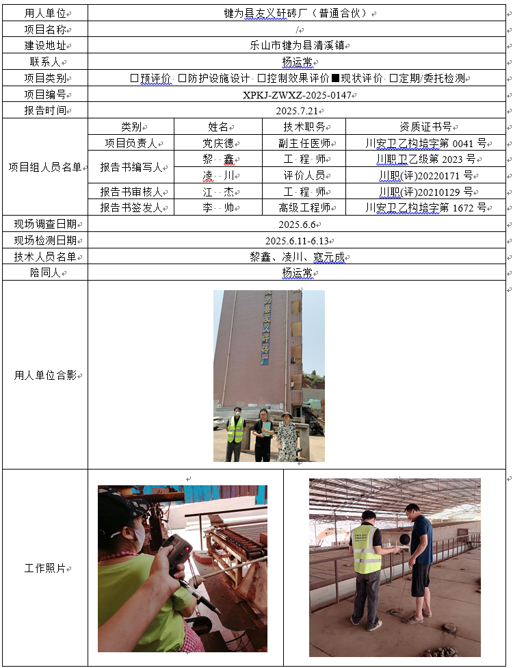 犍为县友义矸砖厂(普通合伙)职业病危害因素现状评价