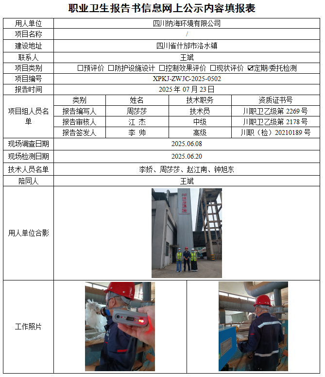 四川佳晟业家具有限公司职业病危害因素定期检测