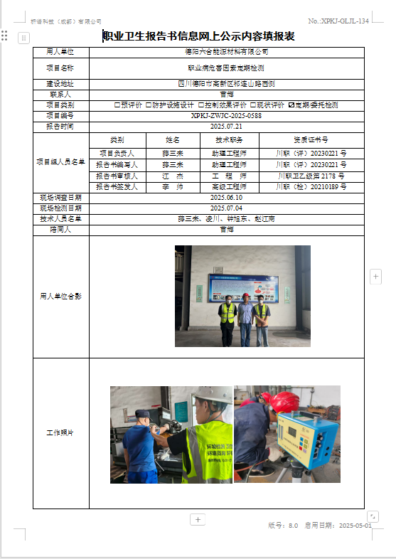 德阳六合能源材料有限公司职业病危害因素定期检测