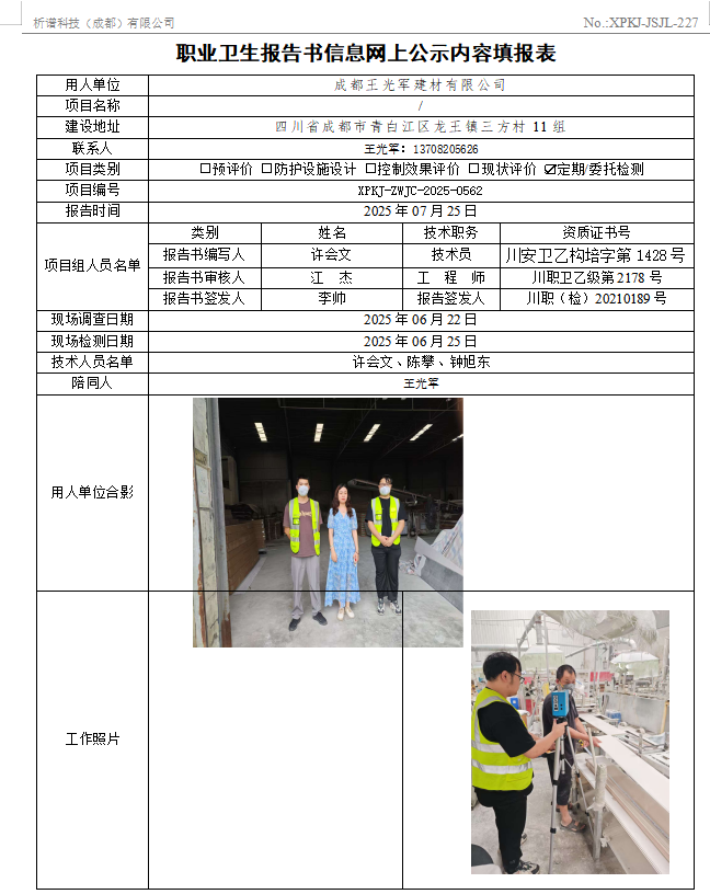 四川硕顺新材料科技有限公司职业病危害因素定期检测